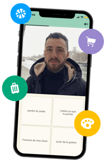 First, Memrise teaches you French words and phrases that you’re actually going to use in the real world. What’s more, you’ll see videos of native speakers using this vocab with their own pronunciation. Our lessons are fully personalised and based on your unique interests.